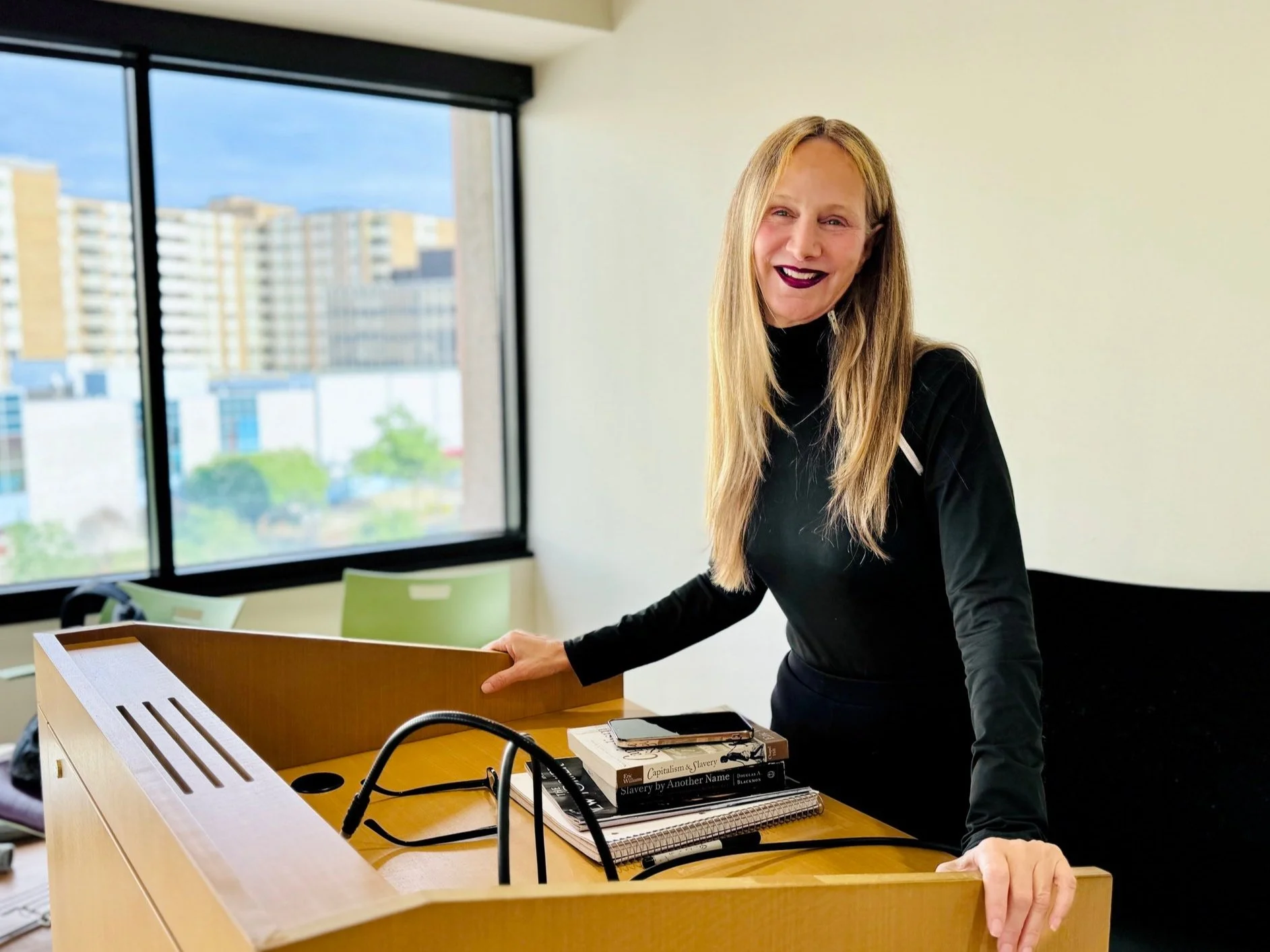 I’ve been teaching at the University of the District of Columbia for almost two decades, centering my students’ voices, their stories, their intellectual curiosity, their deep desire to learn themselves and disrupt narratives, and their instinctive and hard-earned knowledge that education should in fact be about liberation, both personal and political. The students and I have worked hard to construct classrooms of “horizontal pedagogy,” where teacher and students commit to the job of teaching and learning simultaneously, where ideas flow horizontally across the classroom rather than vertically, rather than where the teacher has the answers and “fills up” the student. I cannot imagine a better place to learn and teach, and it’s my real honor and genuine joy to teach such talented, generous students. I go to school every day excited to step into the classroom and continue the journey I embarked on, accidentally, somewhat reluctantly, years ago.